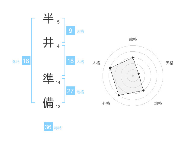 半井 準備さんの総格は36画の3点!
