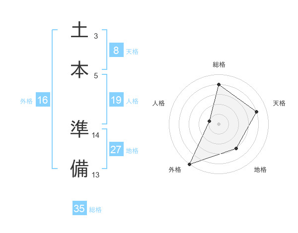 土本 準備さんの総格は35画の4点!
