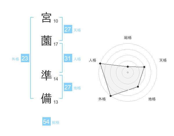 宮薗 準備さんの外格は23画の5点!