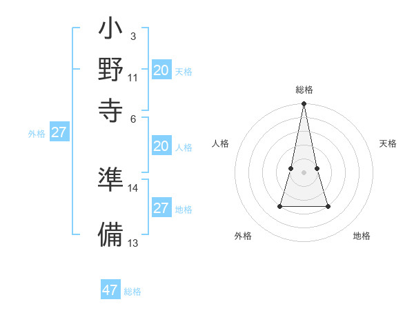 小野寺 準備さんを姓名の画数から五運を鑑定