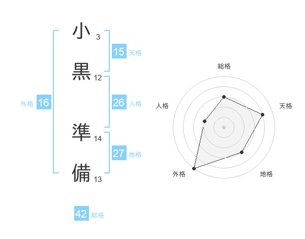 小黒 準備さんの外格は16画の5点!