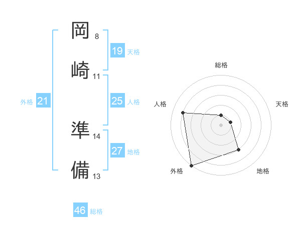 岡崎 準備さんを姓名の画数から五運を鑑定