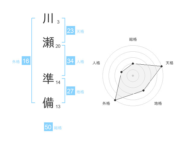 川瀬 準備さんを姓名の画数から五運を鑑定