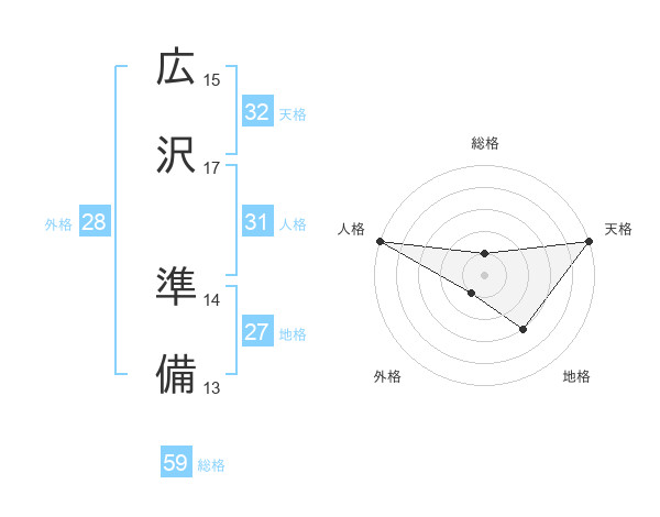 広沢 準備さんの総格は59画の1点!
