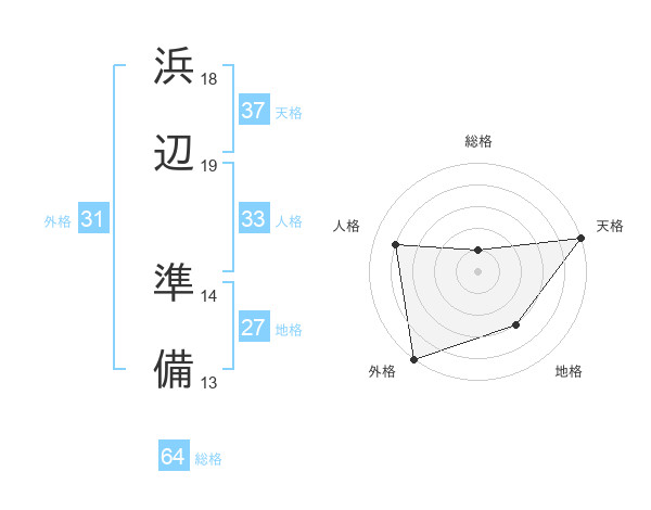 浜辺 準備さんの天格は37画の5点!