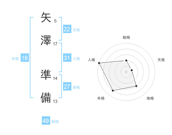 矢澤 準備さんを姓名の画数から五運を鑑定