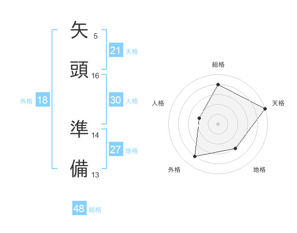 矢頭 準備さんの天格は21画の5点!