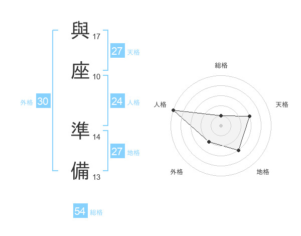 與座 準備さんの総格は54画の1点!