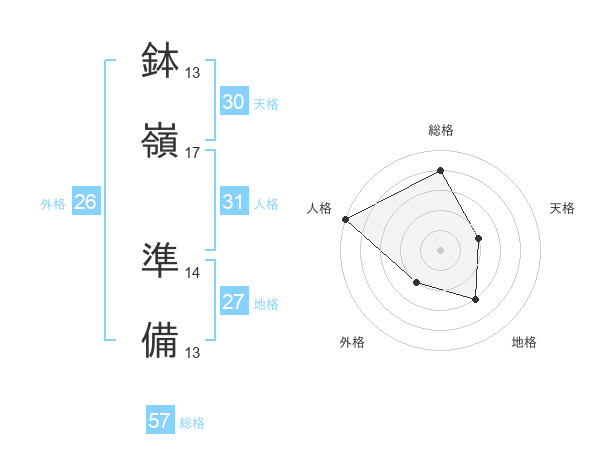 鉢嶺 準備さんの総格は57画の4点!