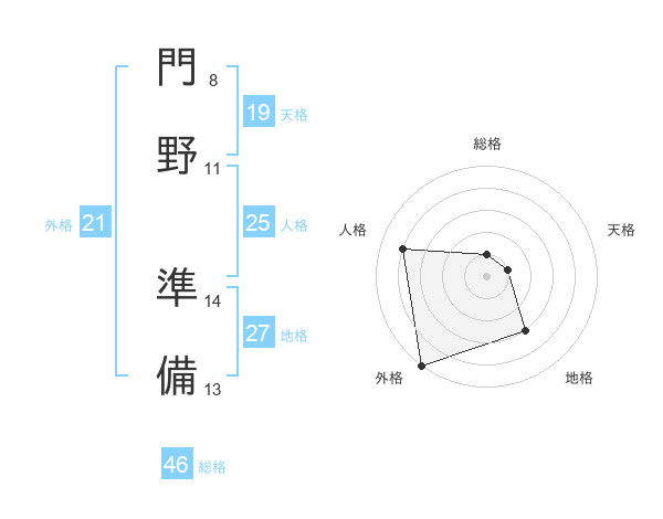 門野 準備さんの総格は46画の1点!