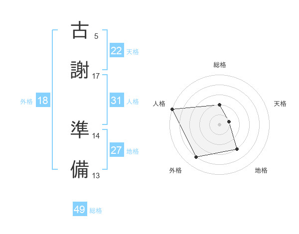 古謝 準備さんの総格は49画の2点!
