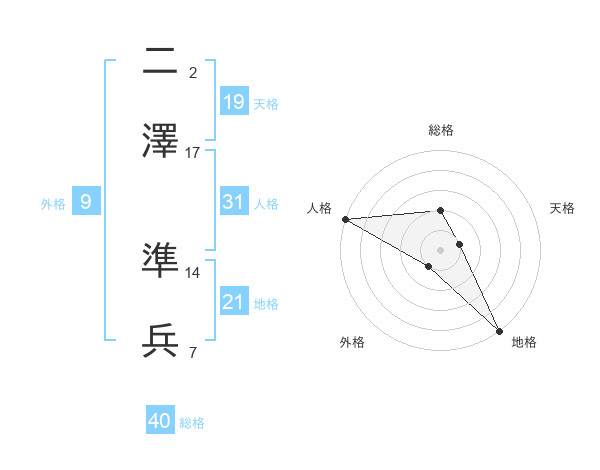 二澤 準兵さんを姓名の画数から五運を鑑定