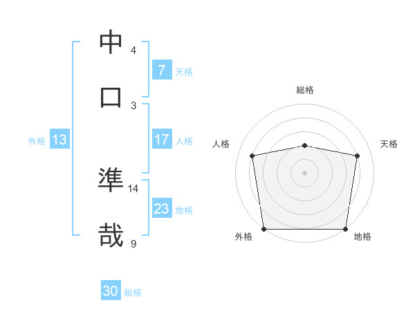 中口 準哉さんの外格は13画の5点!