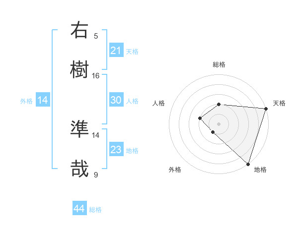 右樹 準哉さんを姓名の画数から五運を鑑定