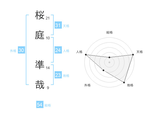 桜庭 準哉さんの総格は54画の1点!