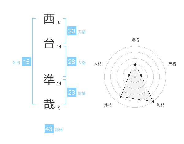 西台 準哉さんの地格は23画の5点!