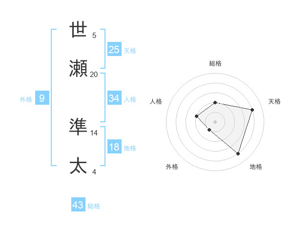 世瀬 準太さんの天格は25画の4点!