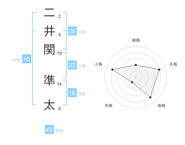 二井関 準太さんの天格は25画の4点!