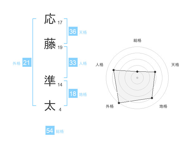 応藤 準太さんの外格は21画の5点!