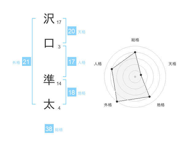 沢口 準太さんの天格は20画の1点!