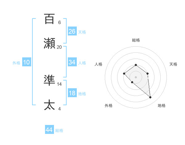 百瀬 準太さんの総格は44画の2点!