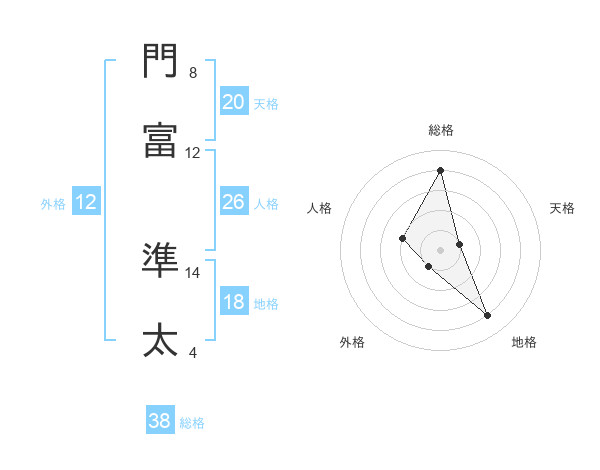 門富 準太さんの総格は38画の4点!