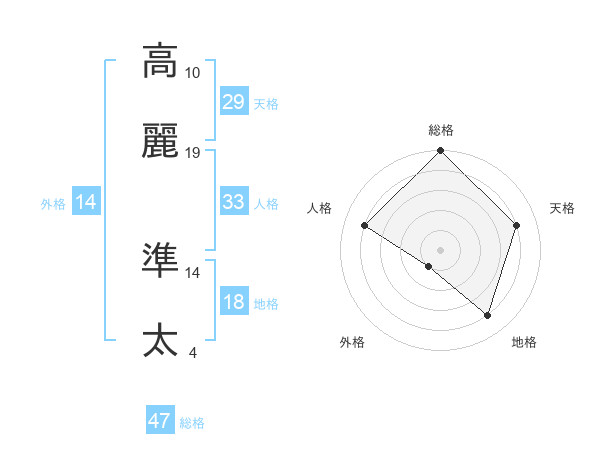 高麗 準太さんの総格は47画の5点!