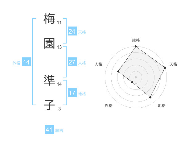梅園 準子さんの天格は24画の5点!