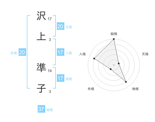 沢上 準子さんの天格は20画の1点!