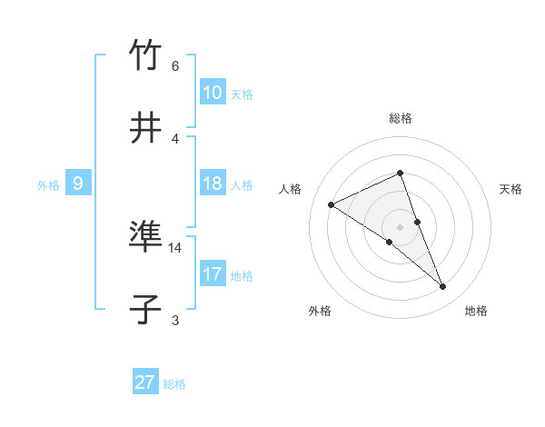 竹井 準子さんの総格は27画の3点!