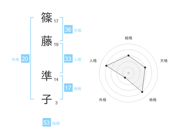 篠藤 準子さんを姓名の画数から五運を鑑定