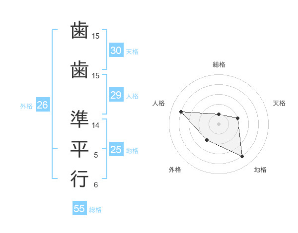 歯歯 準平行さんを姓名の画数から五運を鑑定