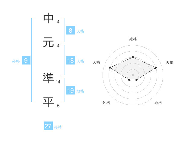 中元 準平さんの天格は8画の4点!