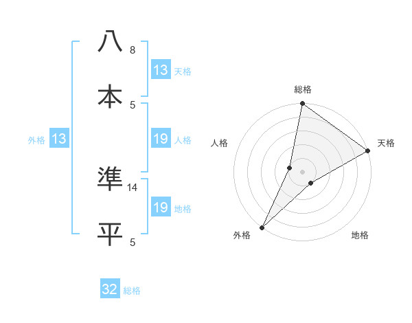 八本 準平さんの外格は13画の5点!