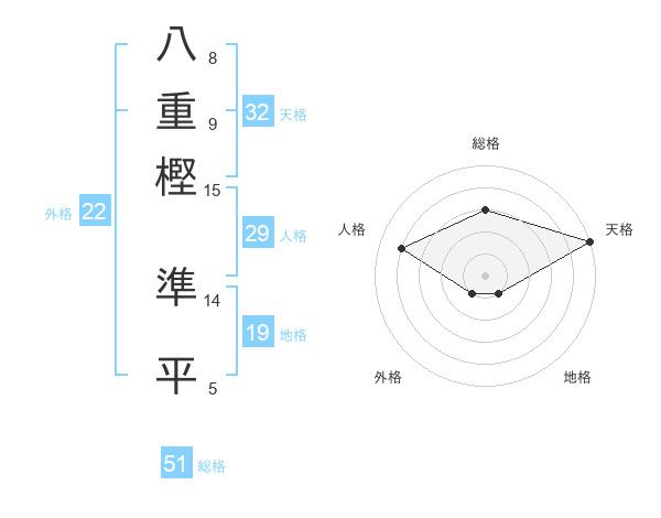 八重樫 準平さんの総格は51画の3点!