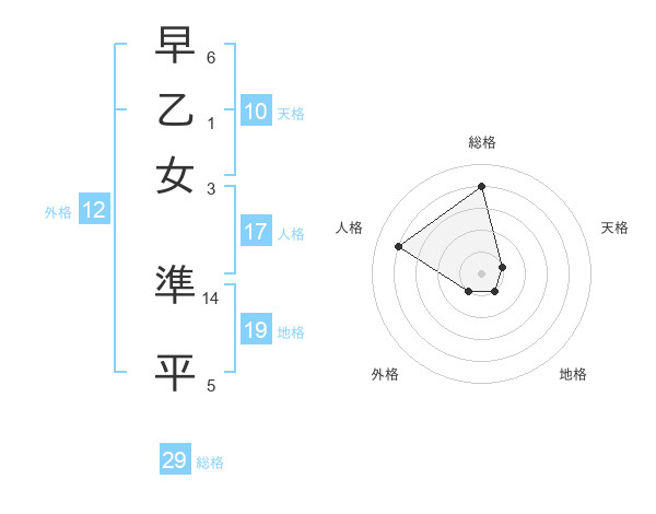 早乙女 準平さんを姓名の画数から五運を鑑定