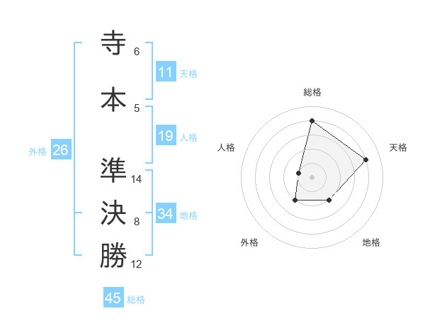 寺本 準決勝さんの総格は45画の4点!