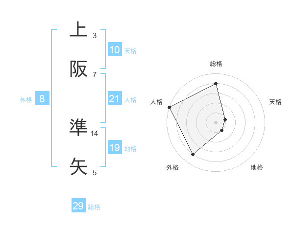 上阪 準矢さんの総格は29画の4点!