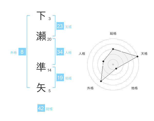 下瀬 準矢さんの総格は42画の3点!