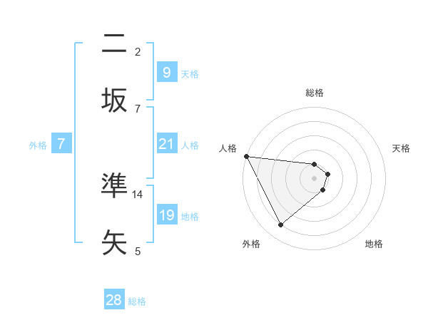 二坂 準矢さんの総格は28画の1点!