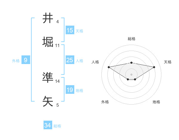 井堀 準矢さんを姓名の画数から五運を鑑定