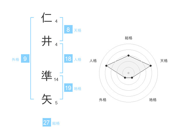 仁井 準矢さんを姓名の画数から五運を鑑定