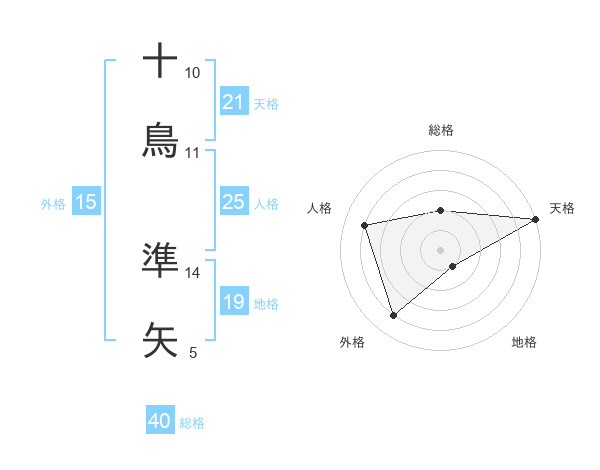十鳥 準矢さんの天格は21画の5点!