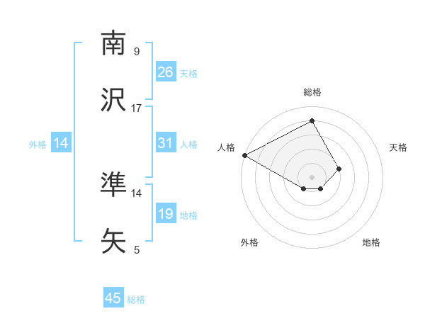 南沢 準矢さんの総格は45画の4点!