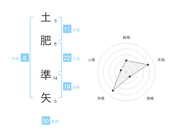 土肥 準矢さんを姓名の画数から五運を鑑定