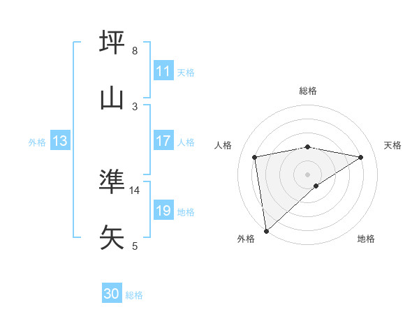 坪山 準矢さんの外格は13画の5点!