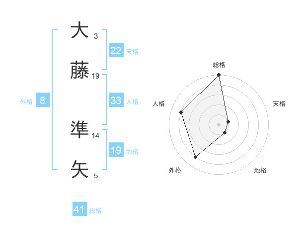 大藤 準矢さんの総格は41画の5点!