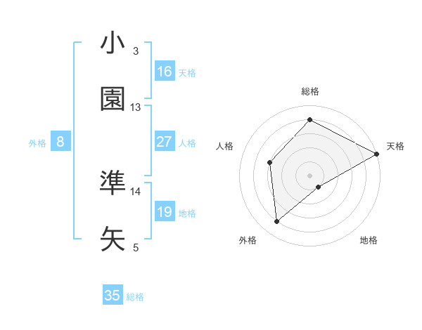小園 準矢さんの総格は35画の4点!