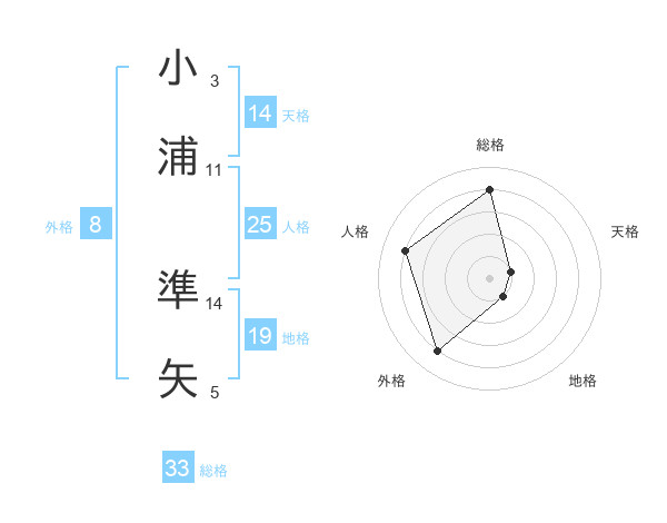 小浦 準矢さんを姓名の画数から五運を鑑定