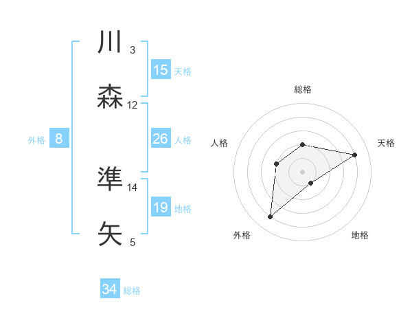 川森 準矢さんの総格は34画の2点!